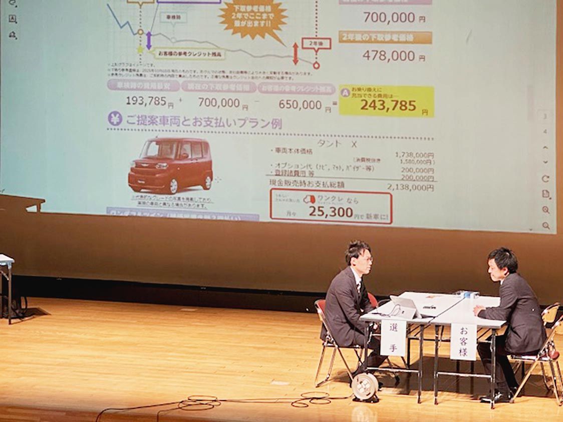 【秋田】秋田ダイハツ(長野高則社長)は、秋田市で「総合営業ロープレ大会」を開催した。車両販売における残価設定型ローン「ワンダフルクレジット(ワンクレ)」の提案力強化を目的に、車両を乗り換えるタイミングで再度ワンクレを使用してもらうことを想...