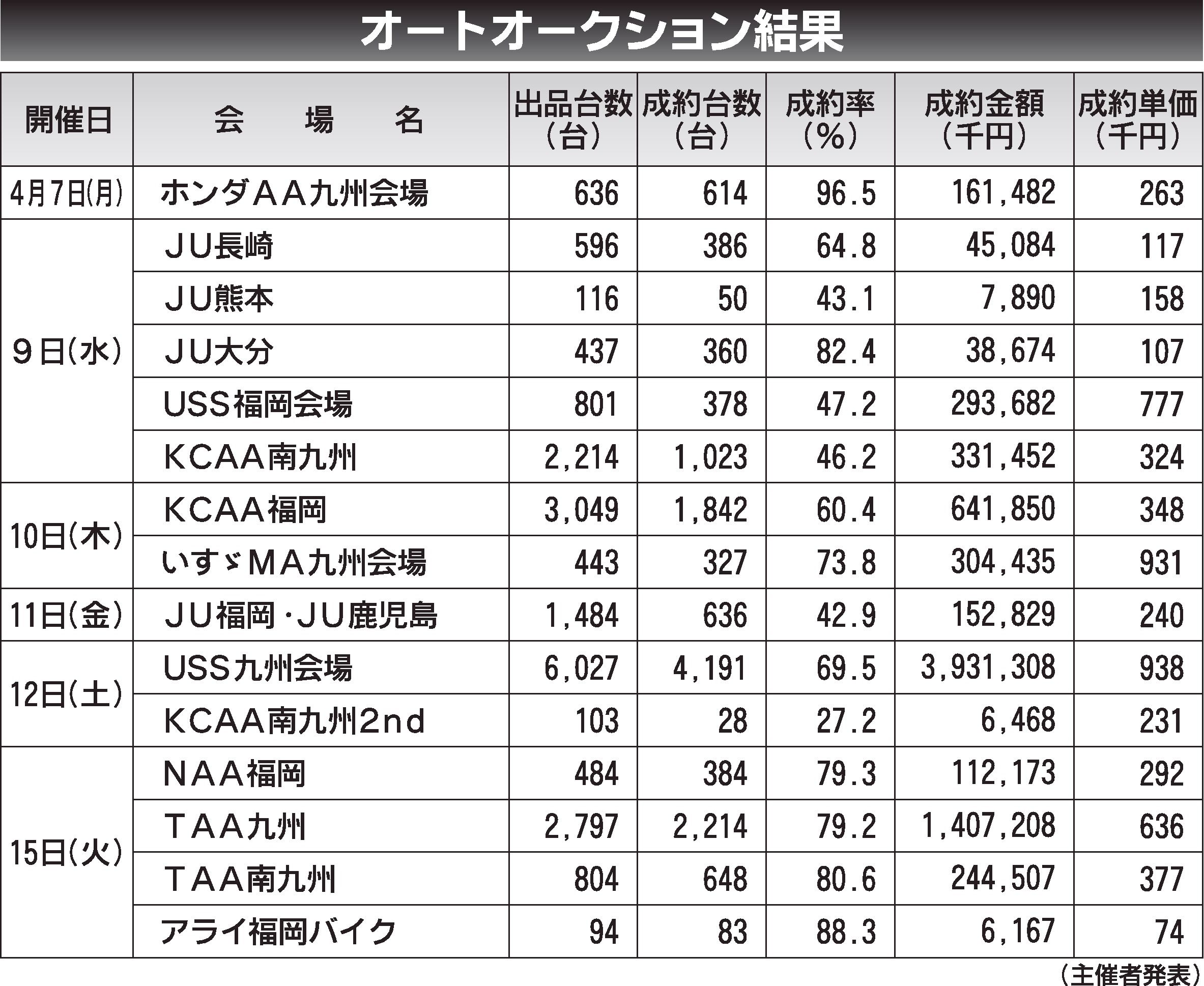 〈オートオークション結果〉九州地区 2025/4/7~15
