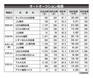 〈オートオークション結果〉九州地区 2025/7/28~8/5