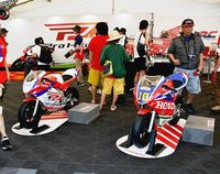 今年の8耐は3日間で6万1500人が来場。前年比では1割増となる。来場者のメイン層は40歳代だが、二輪車メーカーによると、もともと8耐への観戦に親子で訪れるケースも多いという。実際に会場には子どもの姿が多く、各社のブースに飾られているバイクを熱心にみたり、小さな体で大型バイクにまたがり写真を撮影するなど、思い思いにイベントを楽しむ様子が見られた。