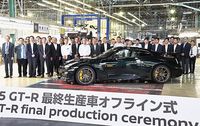 日産自動車は26日、スポーツカー「GT―R」の生産を終了した。同日、栃木工場(栃木県上三川町)で「最終生産車オフライン式」を開き、サプライヤー関係者などを含めた約70人が最後のGT―Rを送り出した。現行の「R35型」は2007年12月の発売から18年で約4万8千台を生産した。世界の高級スポーツカーに引けを取らない高性能で世界中のファンに愛された。