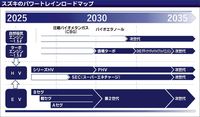 スズキは、独自開発のシリーズ式ハイブリッド車(HV)を2020年代後半、プラグインハイブリッド車(PHV)を30年ごろに投入する。PHVはシリーズ式ハイブリッド機構と電気自動車(EV)の技術を組み合わせる。日本やインド、欧州など各国の規制や需要に合わせ、電動車ラインアップを増やす。