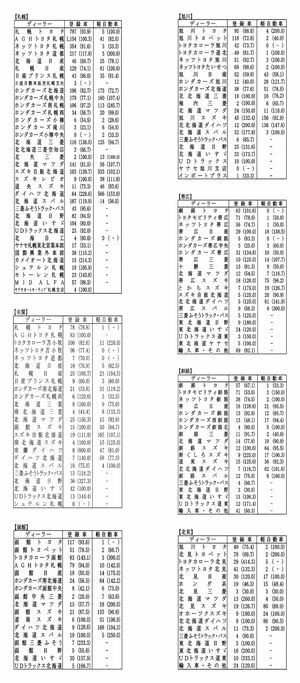 〈8月度全道管内別ディーラー別新車登録・届け出台数(カッコ内は前年同月比)〉札幌管内ホンダ系・スズキ系の登録台数は自販連正会員分
