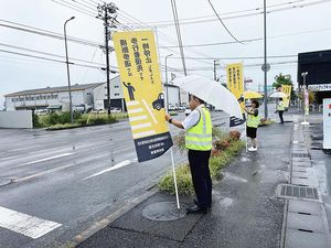 【高知】日本自動車連盟(JAF)高知支部(佐藤誠三支部長)と日本自動車販売協会連合会(自販連)高知県支部(同支部長)は、新車ディ―ラーと関係団体、警察と連携して県内90カ所で「信号機のない横断歩道での一時停止率向上」に向けた街頭啓発活動を行った。同活動は9月25日に実施した。龍馬デザイン・ビューティー専門学校の学生がデザインした幟旗を使用し、新車…