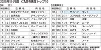 CM総合研究所(関根心太郎代表、東京都千代田区)は、2025年9月度のCM好感度ランキングを公表した。総合ランキングで自動車業類は27カ月連続でトップテンを逃した。今回の対象期間の2025年8月20日~9月19日に放映された全CMは2502銘柄(前月比52銘柄増)。このうち自動車業類は62銘柄(同12銘柄増)だった。