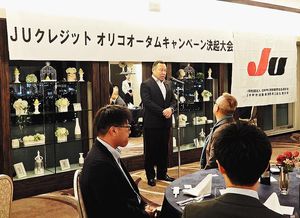 【大津】滋賀県中古自動車販売協会・同商工組合(JU滋賀、大西満会長・理事長)は、草津市内のホテルで「JUクレジット・オリコオータムキャンペーン決起会」を開催した。10~11月に実施するキャンペーンの目標達成に向けて、会員事業者間での信頼関係を深めると同時に団結力を醸成した。決起会は9月25日に実施した。大西会長・理事長は「新車・中古車ともに厳しい…