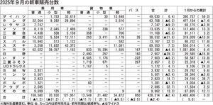 〈2025年9月の新車販売台数〉(登録車、軽自動車) 〈2025年9月の新車販売台数〉(登録車、軽自動車) 2025.10.07 統計
