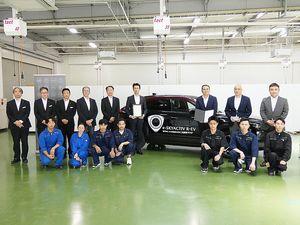 【水戸】北関東マツダ(内田正生社長)は、教材車両としてマツダ「MX―30」をつくば自動車大学校(細野晃一校長)と水戸自動車大学校(八文字和宏理事長)にそれぞれ1台ずつ寄贈し、両校で寄贈式を開催した。つくば自動車大学校での車両寄贈式には、内田社長、細野校長をはじめ、関係者に加えて学生らも出席した。式冒頭に内田社長は「マツダ独自の技術を凝縮した寄贈車…
