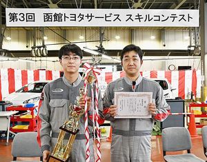 函館トヨタ(堀田易社長)は、「第3回サービススキルコンテスト」を本社・昭和店工場で開催した。点検競技に全店舗から11組(2人1組)のエンジニアが出場し、12カ月点検における正確性や故障診断技術、知識などを採点。本通店の森川了一さん、高橋賢人さんのペアが最優秀賞を獲得した。入社1年目の4人がエントリーしたエキシビション競技は、吉田樹さん(本通店)が…