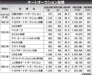 〈オートオークション結果〉近畿地区 2025/10/13~18