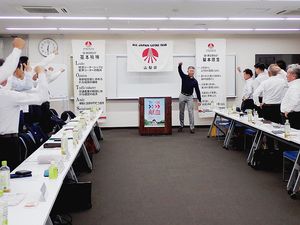 【甲府】全日本ロータス同友会山梨県支部(古菅正直支部長)は、甲府東京海上日動ビルで「2025年度秋の総合キャンペーン決起大会」を開催した。薬袋伸明販売事業部長は「三菱車とスズキ車の販売に注力し、川上を押さえ他種目に取り組む」とし、計画値を高めに設定した。販売計画は新車が216台、タイヤが5167万5千円、保険が1億7660万7千円、オイルが131…