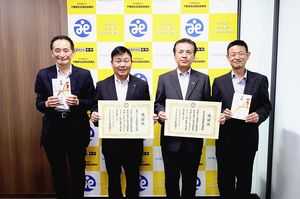 【千葉】CNグループの千葉日産(山本功社長)と日産プリンス千葉(豊永裕次社長)は、自動車保険手続きなどのペーパーレス化で積み立てた寄付金を千葉県社会福祉協議会(花島恭一会長)に寄贈した。その贈呈式が同社協で開かれ、山本社長と豊永社長が寄付金の目録を手渡すとともに、社協から感謝状を受けた。2社を中核とするCNグループは、SDGs(持続可能な開発目標…