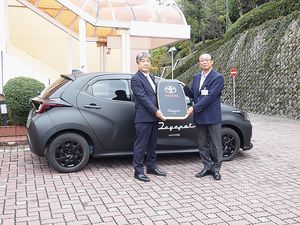 【水戸】茨城トヨペット(幡谷俊一郎社長)は、トヨタ東京自動車大学校(若林良弘校長)で「教材車両寄贈式」を開き、トヨタ「ヤリス」1台を寄贈した。寄贈式には、石塚正人管理部部長、若林校長をはじめ、関係者らが出席した。式冒頭に石塚部長は「車は便利で必要不可欠なもの。自動車整備士のおかげで安心・安全に利用できる。実習は大切で、寄贈車を積極的に活用して楽し…