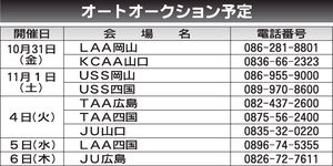 トップ 中・四国 〈オートオークション予定〉中・四国地区 2025/10/31~11/6