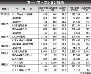 トップ 九州 〈オートオークション結果〉九州地区 2025/10/20~28