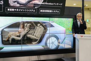トヨタ紡織は、次世代の車内空間「I.C.30インテグレーテッドキャビン2030」を披露した。走行中でも安全かつ心地よく身を委ねることができるシートや、車室内に入る騒音や振動を解析して静かな空間をつくるパッケージを盛り込んだ。ブースでは映像と音、振動、動きで都市の移動を体験できる没入型体感シートや、航空機座席と機内用車いすを一体化した「ウェルボヤー…