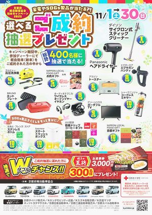【京都】京都府軽自動車協会(佐藤徹会長)は、「秋のキャンペーン2025」を開始した。11月の1カ月間実施する。期間中に加盟店で軽自動車を購入したユーザーの中から、抽選で100人に人気家電やカタログギフトをプレゼントする。SDGs(持続可能な開発目標)関連グッズも賞品に加え、京都のSDGs活動促進に貢献する。同協会は、代替需要が活発な時期にキャンペ…