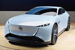 マツダの「ビジョンX(クロス)―クーペ」は2ローターの過給器付きロータリーエンジン(RE)とモーター、バッテリーを搭載する。「『駆動力としてのREを出すぞ』という意気込み」(梅下隆一取締役専務執行役員)を込めた。二酸化炭素(CO2)回収装置も搭載し、カーボンニュートラル(温室効果ガス排出実質ゼロ)を超える「カーボンネガティブ」を目指す。全長約5㍍…