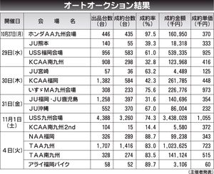〈オートオークション結果〉九州地区 2025/10/27~11/4