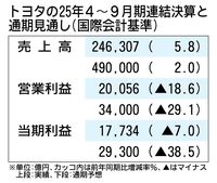 25年4~9月期の連結業績(国際会計基準、IFRS)は増収減益だった。売上高に相当する売上収益が前年同期比5.8%増の24兆6307億円、営業利益は同18.6%減の2兆56億円だった。