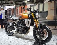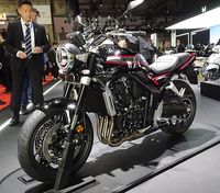 ホンダブースで注目したいのが、11月に発売する大型のロードスポーツモデル「CB1000F」。どこか懐かしさを感じるデザイン、カラーリングだが、現代の5インチフルカラー液晶メーターが違和感なく溶け込む。「CB1000ホーネット」をベースとしたエンジンは低中回転域でトルクフルなセッティング。街乗りからツーリングまで幅広いシーンにマッチする。足つきも良く、老若男女が楽しめそうなマシンだ。