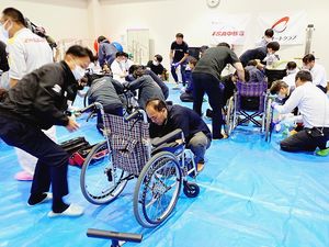 【甲府】損害保険ジャパンのAIRオートクラブ山梨支部(坂本信貴支部長)とJSA中核会山梨支部(河野大介支部長)は、山梨県立あけぼの医療福祉センターで「合同ボランティア活動(車いす清掃・整備)」を実施した。地域貢献活動の一環として損保ジャパンの社員を含む約52人が参加した。車いすの整備・清掃は山梨が発祥。整備技術を生かして2003年から始まり、今年…
