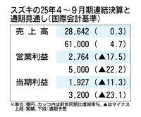 スズキが11月6日に発表した2025年4~9月期連結決算(国際会計基準)は、売上高が前年同期比0.3%増の2兆8642億円、営業利益は同17.5%減の2764億円、当期純利益が同11.3%減の1927億円の減収減益だった。為替影響や原材料価格の高騰により、利益は5年ぶりに減少した。通期見通しはオランダの中国系半導体メーカー・ネクスペリアの出荷停止の影響など先行きが不透明とし、期初公表値を据え置いた。
