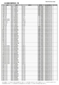 国土交通省が公表したOBD検査の対象車種の型式一覧を紹介する。