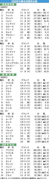 日本自動車販売協会連合会(自販連、天野洋一会長)が8日発表した2009年の新規登録乗用車車名別順位によると、トヨタ自動車のハイブリッド車(HV)「プリウス」(EXを含む)が、前年比185・7%増の20万8876台と20万台の大台を超え、H...
