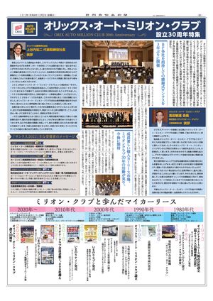 オリックス・オート・ミリオン・クラブ設立30周年特集1面